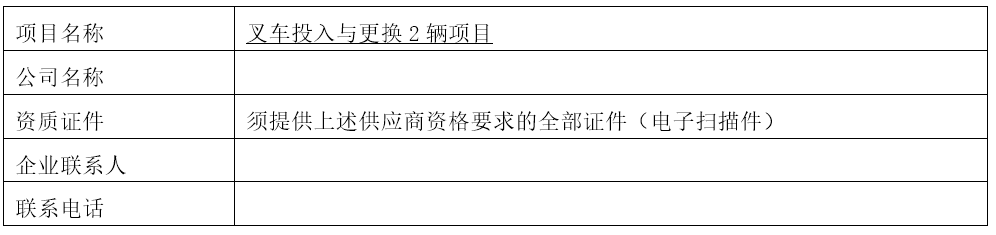 二、 采购项目:叉车投入与更换2辆项目